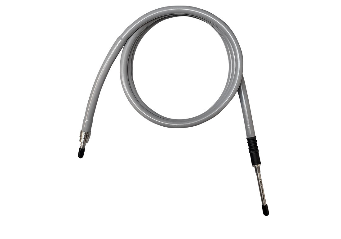 Vid båda ändarna finns det en gänga för applicering av passande adapter till respektive ljuskälla/instrument.